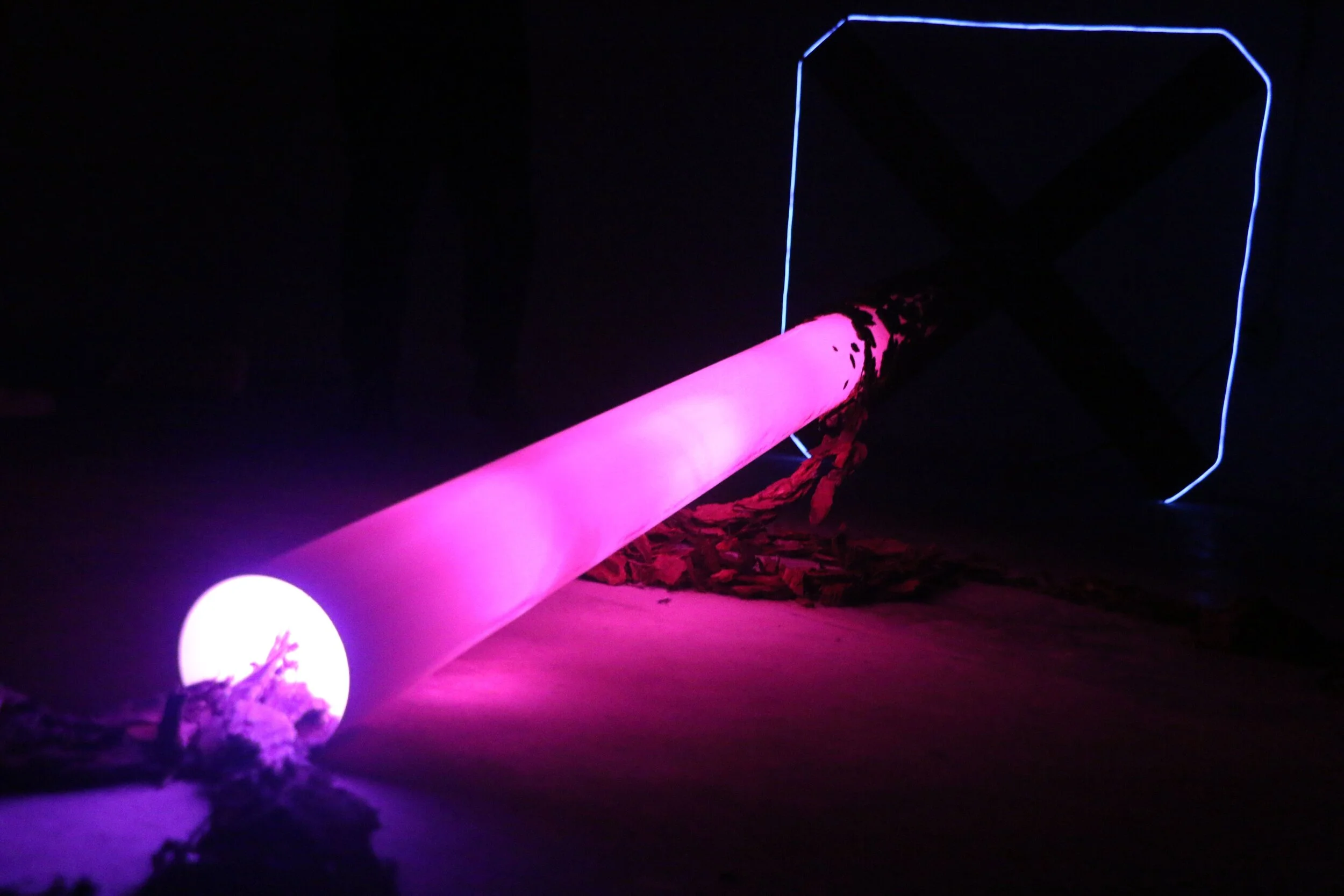 wood, PVC pipe, mulch, EL wire
